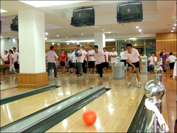 保齡球又叫“地滾球”,起源于德國,是一種在木板球道上用球滾擊木瓶的室內(nèi)體育運(yùn)動。比賽現(xiàn)場,大家在工作人員的引導(dǎo)下,換上專業(yè)的保齡球鞋,做完熱身運(yùn)動和結(jié)束練習(xí)后,開始了比賽。很多員工一上手就能看出是“保齡健將”,拿球、下蹲、大鵬展翅式的扔球動作,動作標(biāo)準(zhǔn)、嫻熟、到位,一球命中,引起現(xiàn)場人員一陣歡呼,很快成為比賽場上的“明星”;接下來“眾相百出”: 有的因?yàn)椤笆д`”而頓足捶胸,有的因?yàn)椤靶疫\(yùn)”而洋洋得意——比賽氣氛也由之前的輕松活躍變得緊張激烈,大家你爭我奪、毫不示弱,慢慢地進(jìn)入了白熱化階段,最終山西區(qū)域的毛潔銀、河南區(qū)域的常紅星分別榮獲了女子組和男子組的冠軍。