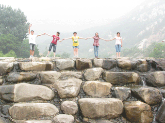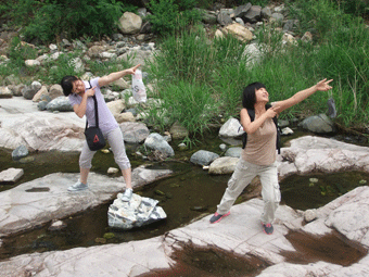 水光瀲滟晴方好,山色空蒙雨亦奇”。用此詩句來形容今日的彩石溪毫不為過,雨后的彩石溪,畫入水中秀,水在畫上流。溪中流水之下如彩石鋪就,溪底一條條石紋五彩紛呈,彩石溪因此而得名。彩石溪景色別致,雖不似“岱頂觀日出”壯麗,更不是什么名勝古跡,只是泰山奇景中一角,卻足以令人趨之若鶩,更有別樣的詩情畫意。彎彎曲曲的溪水像是被彩石染上了顏色,像是一條五彩斑斕的飄帶一直通往山頂。沿溪一路直上,十里山澗,波光瀲滟,奇特地質(zhì)地貌,猶如潑墨大寫意。身臨其中,讓人不由地贊嘆起大自然的鬼斧神工??茨俏宀拾邤痰木€條隨山勢或舒或展,聽那清澈的流水潺潺,那情那景仿佛置身于世外桃源。脫下鞋子,佇立水中,溪流溫順而清澈。美麗的彩石引得大家駐足欣賞,仔細(xì)看水中還會發(fā)現(xiàn)聞名遐邇的泰山赤鱗魚以及黑色的小蝌蚪,它們出沒于石隙水藻之間,身影靈巧輕盈,搖曳多姿,為大家的出游增添了很多的情趣。山中的空氣清新甘潤,忍不住來個深呼吸,頓覺心曠神怡,神清氣爽,每一個細(xì)胞說不出的舒暢,平日的瑣碎煩亂事情一掃全無,大家的身心得到完全放松。