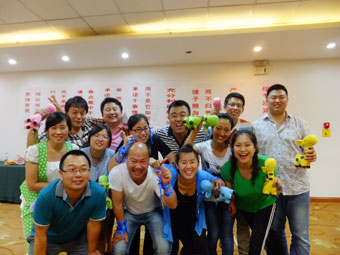 隨后,在大家熱切的期盼中迎來(lái)了第一個(gè)團(tuán)隊(duì)游戲。這是一個(gè)看似非常簡(jiǎn)單的游戲,開(kāi)始之前每一位隊(duì)員都充滿了必勝的信念,大家相約要以最短的時(shí)間完成任務(wù)。在游戲進(jìn)行中,大家才突然意識(shí)到,看似小小的道具并不像他們想象得那么容易駕馭,本意是向下,它卻偏偏朝上,一個(gè)預(yù)計(jì)在20-30秒就可以完成的游戲,每隊(duì)卻花費(fèi)了近20分鐘的時(shí)間,大大出乎意料之外。這時(shí)候大家才明白:“放下”原來(lái)是這么難。其實(shí)很多時(shí)候我們心里想的是我們要拿起什么,卻很少思考我們需要放下什么?放下榮耀、放下經(jīng)驗(yàn)、放下負(fù)擔(dān)、放下一切阻止我們前進(jìn)的障礙,只有先放下才會(huì)有機(jī)會(huì)拾起。