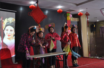 表彰環(huán)節(jié)結(jié)束后,聯(lián)歡會(huì)揭開(kāi)了狂歡的序幕,本次聯(lián)歡會(huì)分成了四個(gè)隊(duì):新星隊(duì)、夢(mèng)之隊(duì)、雄鷹隊(duì)和雷霆隊(duì)。首先進(jìn)行了團(tuán)隊(duì)風(fēng)采展示,接下來(lái)各個(gè)團(tuán)隊(duì)給我們帶來(lái)了精彩的節(jié)目匯演:《幸福廚房》私房菜和創(chuàng)意菜制作大PK環(huán)節(jié)既檢驗(yàn)了員工的廚藝水平又考驗(yàn)了大家的團(tuán)隊(duì)協(xié)作能力;活力四射的舞蹈《Nobody》、幽默搞笑的小品《土豪版甄嬛傳》、催人奮進(jìn)的歌曲《中國(guó)人》、《明天會(huì)更好》贏得了陣陣掌聲,體現(xiàn)出基地員工多才多藝的另一面;在節(jié)目表演的過(guò)程中還穿插組織了精彩的游戲節(jié)目,讓大家玩的歡呼雀躍、不亦樂(lè)乎。