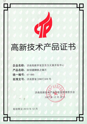 高新技術(shù)產(chǎn)品證書—鐵之緣