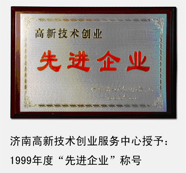 1999年,被濟南高新技術(shù)創(chuàng)業(yè)服務(wù)中心授予“高新技術(shù)創(chuàng)業(yè)先進企業(yè)”