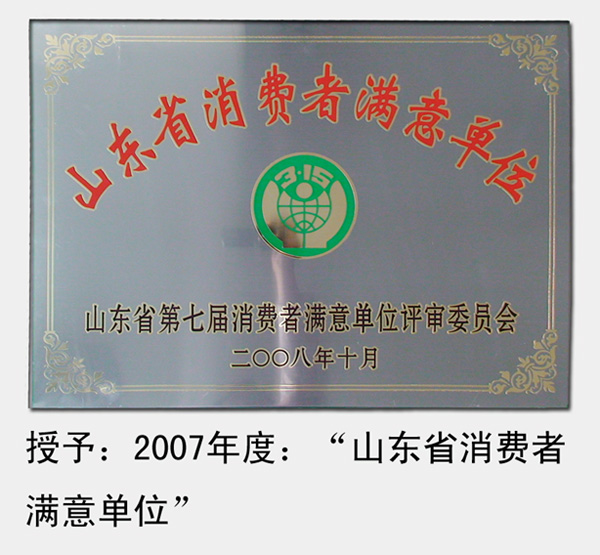 2008年,被山東省消費(fèi)者協(xié)會(huì)評(píng)為“第七屆山東省消費(fèi)者滿意單位”
