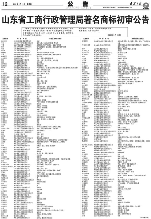 2009年,“新稀寶”申報(bào)山東省著名商標(biāo)已獲得初審?fù)ㄟ^(guò),并于2009年9月18日《大眾日?qǐng)?bào)》第12版進(jìn)行公告。
