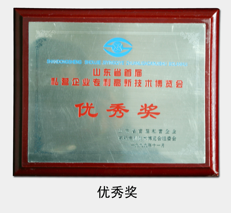 1999年被評(píng)為“山東省首屆私營企業(yè)專利高新技術(shù)博覽會(huì)優(yōu)秀獎(jiǎng)”