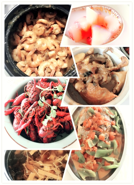 沒想到平時(shí)工作能力杠杠的同事們,做起菜來也絲毫不遜色。沒過多久菜已經(jīng)陸續(xù)上桌,有毛毛做的紅燒魚與水煮牛肉,米粒做的菜包釀、咸蛋炒南瓜;陶大神做的 佛跳墻、蟹黃煲、椰香蝦;潤姐的燒鴨、西芹紅椒炒白果、涼拌木耳;寧寧的炒花甲螺;振宇做的青椒炒肉;芳芳的芒果西米露。一大桌菜色香味俱全、品種多樣, 飯前涼菜、家常炒菜、營養(yǎng)豐盛的大菜以及飯后甜點(diǎn)應(yīng)有盡有。