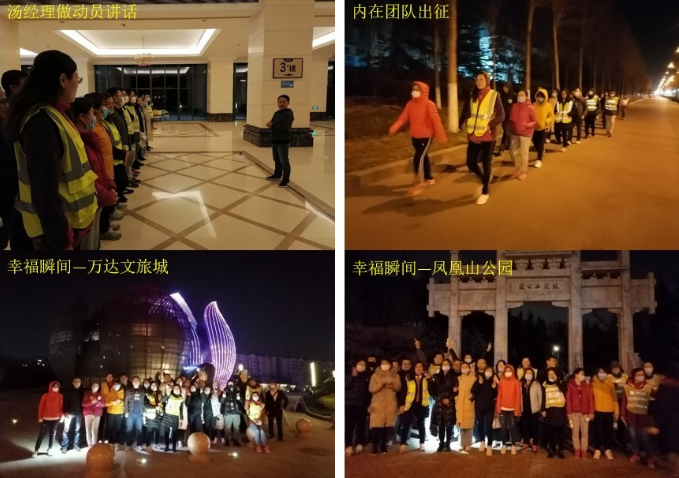 夜晚是讓人可以沉靜的時間,行走可以讓人與內(nèi)在更好的連接。慢慢降臨的春夜里,新稀寶的夜行大軍已經(jīng)整裝待發(fā),在湯經(jīng)理激情澎湃的動員會之后,浩浩蕩蕩的隊伍出發(fā)了,沉靜的夜晚靜悄悄,整個世界都朦朦朧朧的,行走中的力量和能量仿佛一盞明燈,照亮了前進的道路。