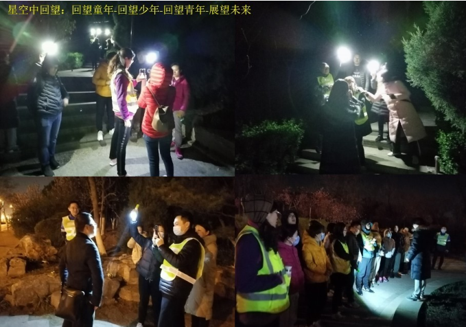行走中大家克服體力不支,互相鼓勵,互相攙扶,在即將到達終點時舉杯相慶,不知不覺中天空開始泛白,黑夜?jié)u漸消退,就像我們在探尋內(nèi)在的路上一樣,每個人的內(nèi)心都更加的堅定也更加的清晰。