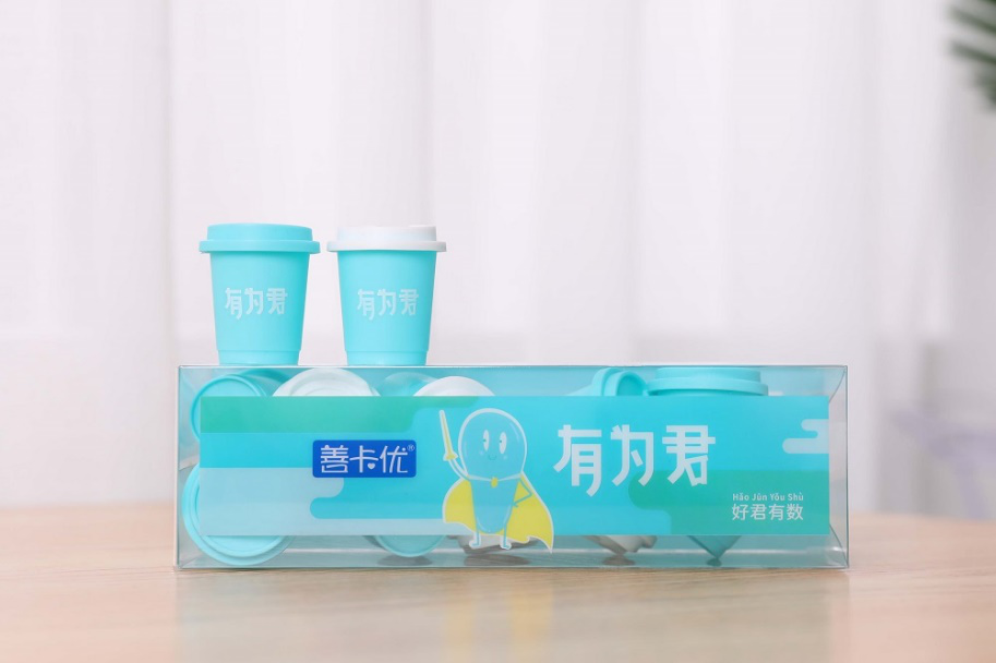 首創(chuàng)小藍罐益生菌包裝,食用后的小罐可以用來搭積木,種綠植,玩魔術(shù)等小游戲。