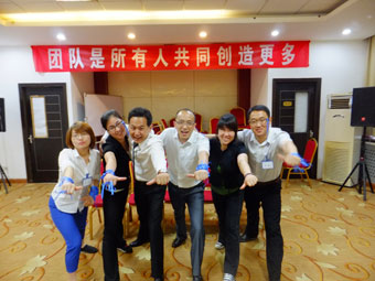 隨后,在大家熱切的期盼中迎來(lái)了第一個(gè)團(tuán)隊(duì)游戲。這是一個(gè)看似非常簡(jiǎn)單的游戲,開(kāi)始之前每一位隊(duì)員都充滿了必勝的信念,大家相約要以最短的時(shí)間完成任務(wù)。在游戲進(jìn)行中,大家才突然意識(shí)到,看似小小的道具并不像他們想象得那么容易駕馭,本意是向下,它卻偏偏朝上,一個(gè)預(yù)計(jì)在20-30秒就可以完成的游戲,每隊(duì)卻花費(fèi)了近20分鐘的時(shí)間,大大出乎意料之外。這時(shí)候大家才明白:“放下”原來(lái)是這么難。其實(shí)很多時(shí)候我們心里想的是我們要拿起什么,卻很少思考我們需要放下什么?放下榮耀、放下經(jīng)驗(yàn)、放下負(fù)擔(dān)、放下一切阻止我們前進(jìn)的障礙,只有先放下才會(huì)有機(jī)會(huì)拾起。