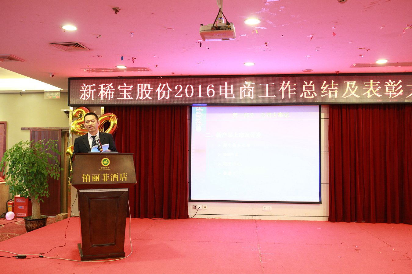 綠城南寧金雞賀歲,電商商網(wǎng)揚帆起航。2017年1月13日,新稀寶股份2016年度電商及商網(wǎng)工作總結(jié)暨表彰大會在廣西南寧鉑麗菲酒店正式召開。電商事業(yè)部一部、商網(wǎng)部全體精英共計80余人參加了此次盛會,新稀寶股份有限公司副總經(jīng)理-鄭朝霞女士、高層經(jīng)理輪值主席-張秋峰先生、生產(chǎn)總監(jiān)-王猛先生、電商事業(yè)部副經(jīng)理-李建東先生、南寧分公司副經(jīng)理-陳文歡先生均出席了本次會議。
