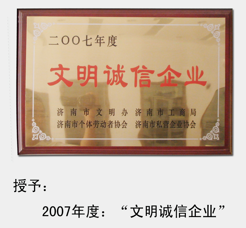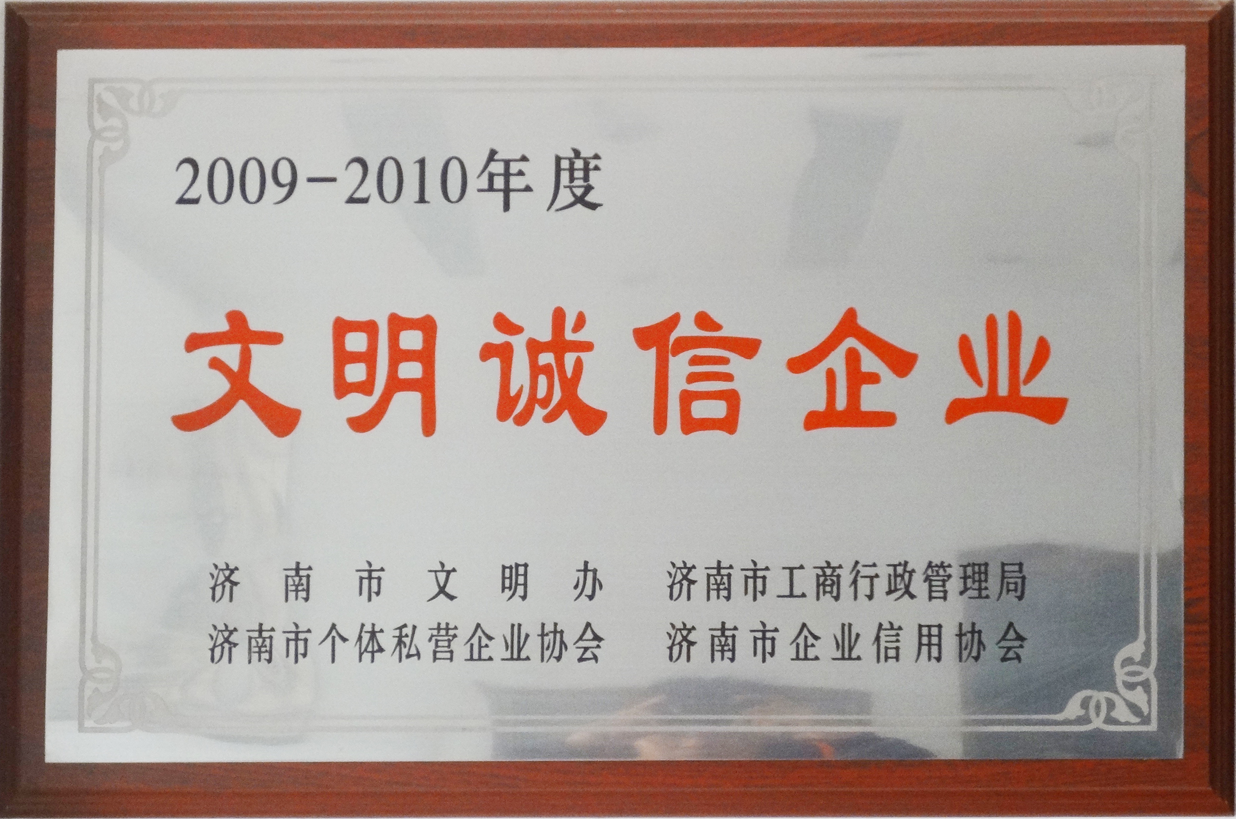 2005~2010年,被濟(jì)南市委宣傳部、濟(jì)南市文明辦、濟(jì)南市工商局、濟(jì)南市個(gè)私協(xié)會(huì)評(píng)為“文明誠信民營企業(yè)”