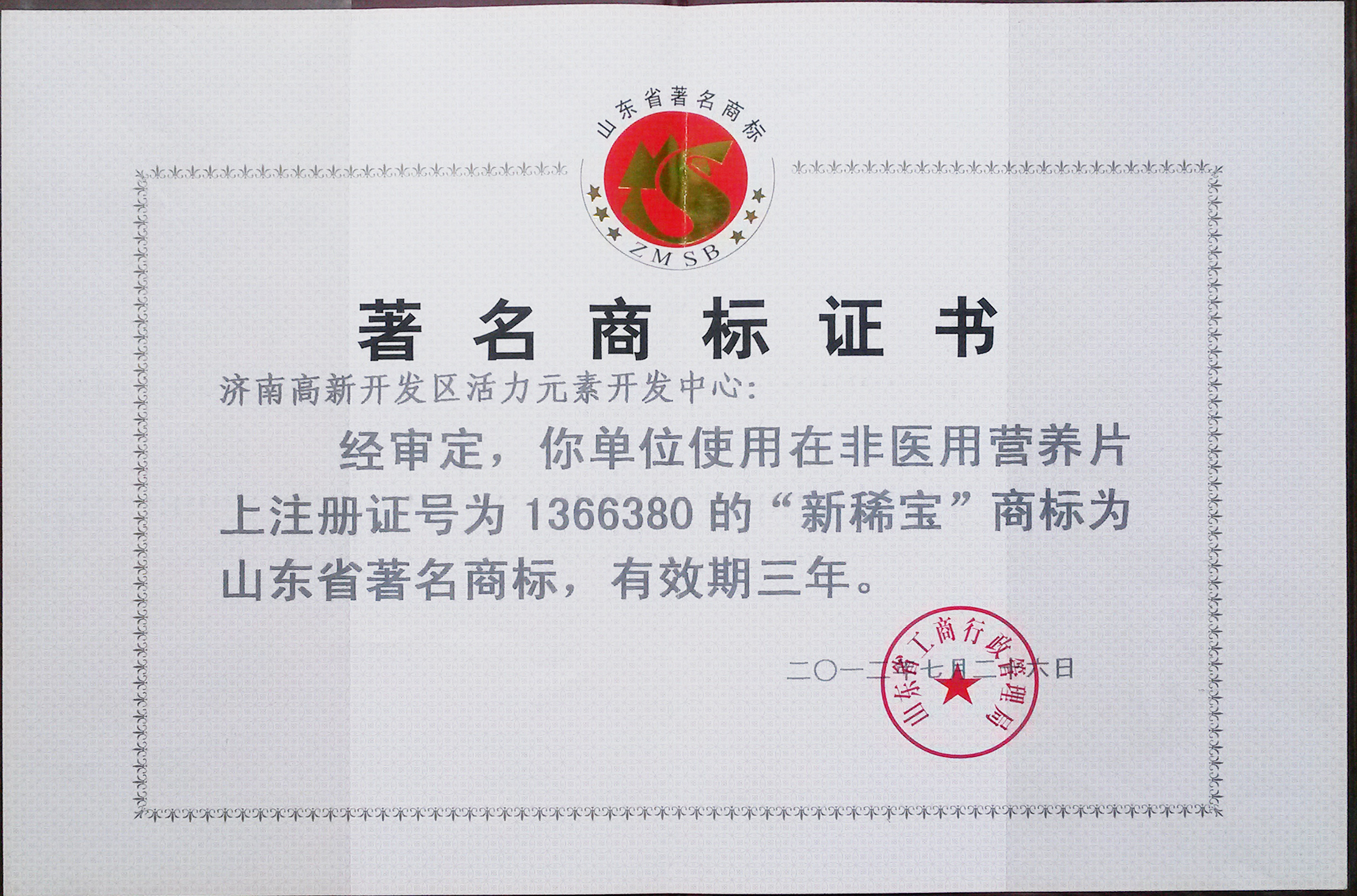 2009年,“新稀寶”被山東省工商行政管理局評(píng)為“山東省著名商標(biāo)”