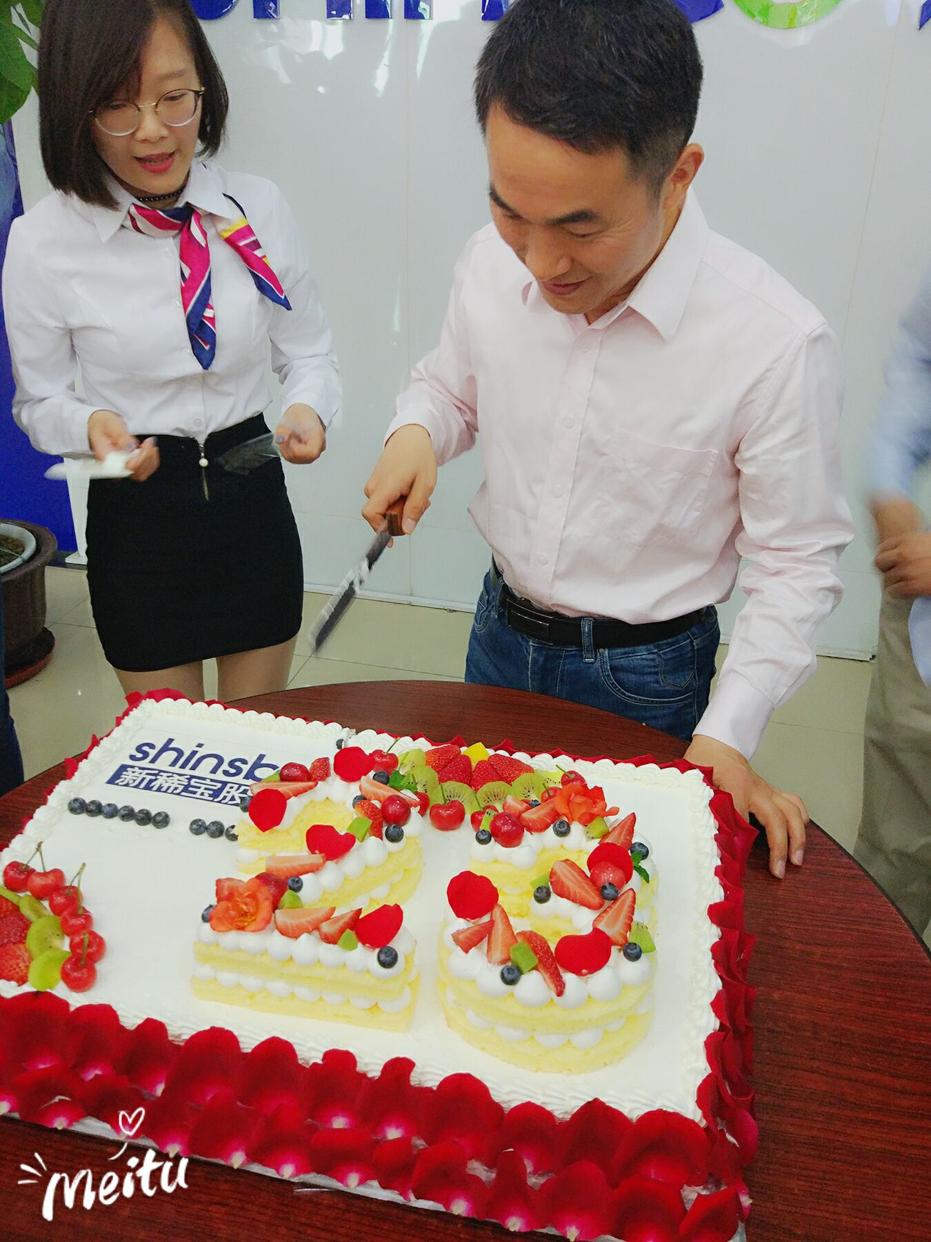 9:20董事長(zhǎng)湯傳忠先生親自來到活動(dòng)現(xiàn)場(chǎng),副總經(jīng)理鄭朝霞女士也一起來到現(xiàn)場(chǎng)與大家共同慶祝。9點(diǎn)23分,在主播的帶動(dòng)下,新稀寶家人們共同唱起了生日歌,伴隨著歌聲,兩位禮儀推出了特別為新稀寶23周歲生日定制的大蛋糕,將慶?;顒?dòng)推向了第一個(gè)高潮。湯經(jīng)理虔誠(chéng)地雙手合十、許下心愿,并在現(xiàn)場(chǎng)親手為大家分發(fā)了生日蛋糕,隨后在直播間里向每位新稀寶家人送去了祝福和心愿。