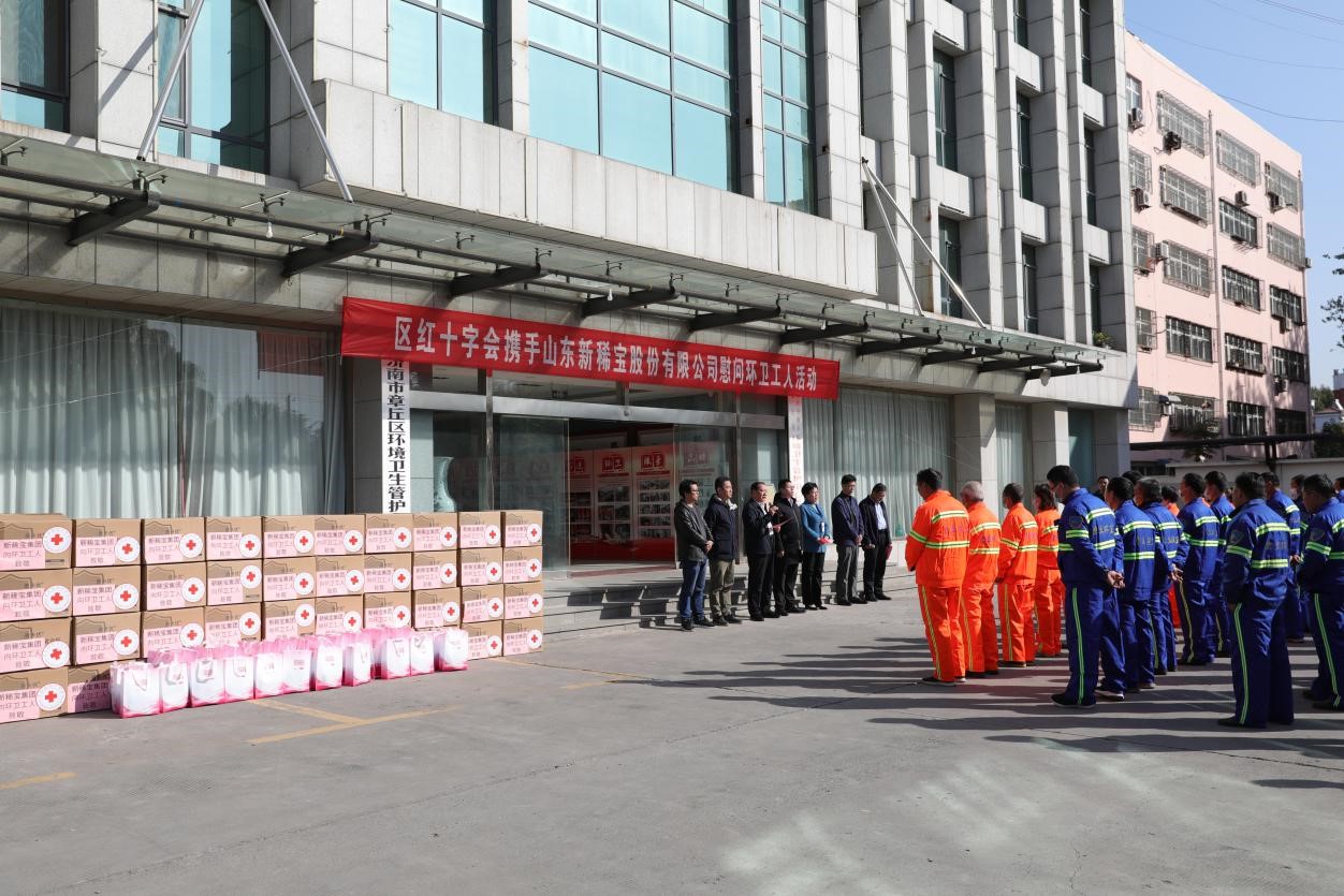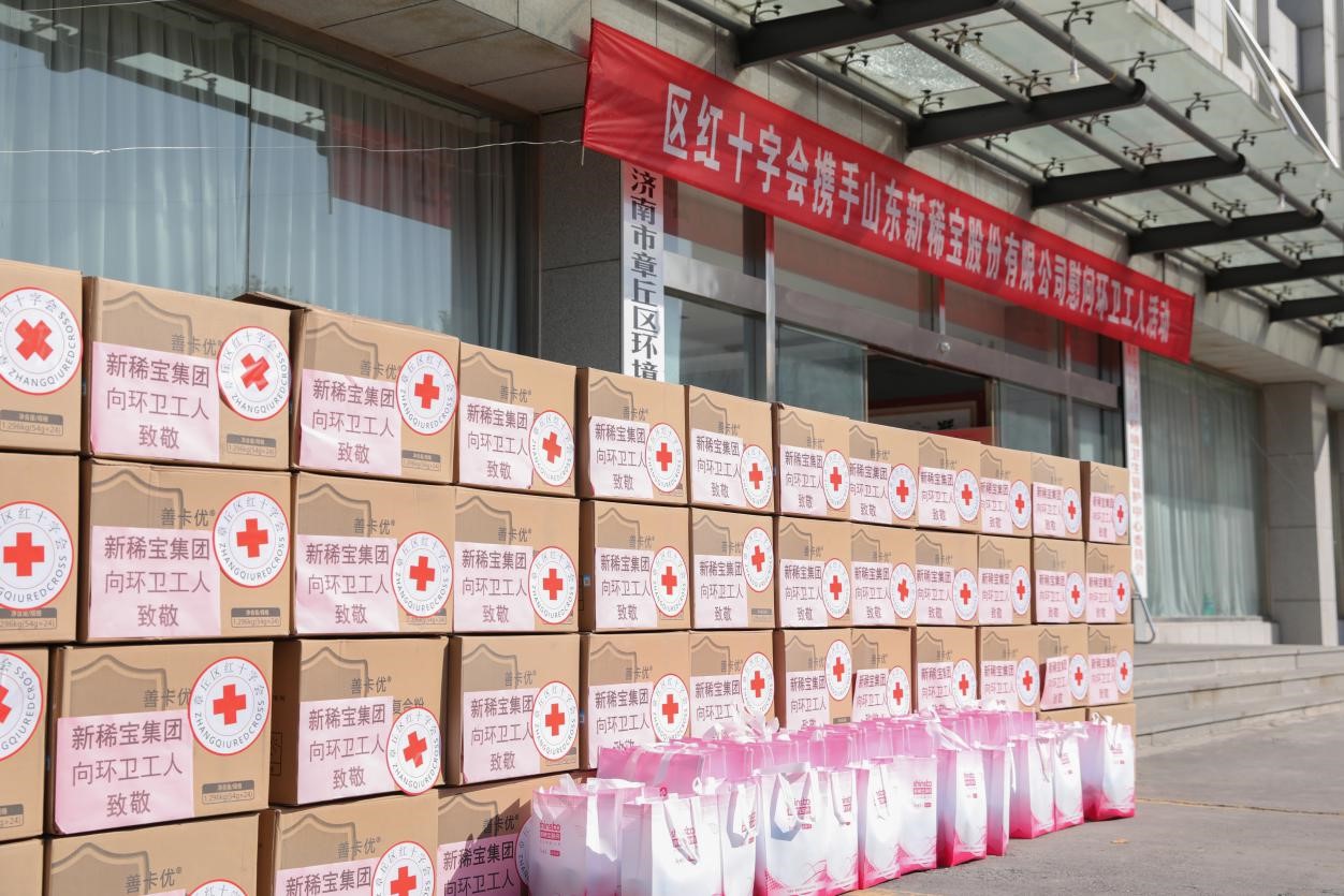 2020年11月3日,新稀寶集團(tuán)攜手章丘區(qū)紅十字會為章丘區(qū)環(huán)衛(wèi)工人送去溫暖問候。捐贈善卡優(yōu)乳清乳鐵蛋白固體飲料共1200罐,總價值432000元。