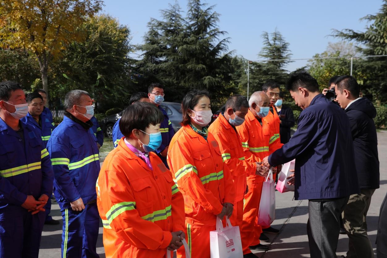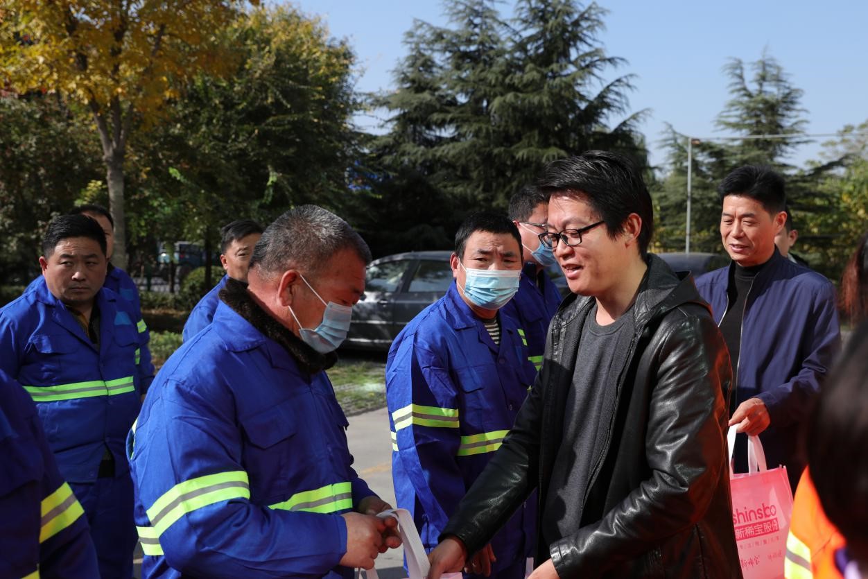 進(jìn)入秋冬后氣溫驟降,隨著陣陣寒風(fēng),樹葉紛紛飄落。在市區(qū)的各個路段,隨處可見環(huán)衛(wèi)工人不停移動清理落葉。不論嚴(yán)寒下雨,還是大雪紛飛,他們都穿行在城市的大街小巷,用手里的工具,守護(hù)城市的潔凈。為了體現(xiàn)新稀寶集團(tuán)對環(huán)衛(wèi)工人的敬意,新稀寶集團(tuán)總經(jīng)辦在馮小龍總經(jīng)理的指示下對環(huán)衛(wèi)工人進(jìn)行了愛心慰問捐贈。